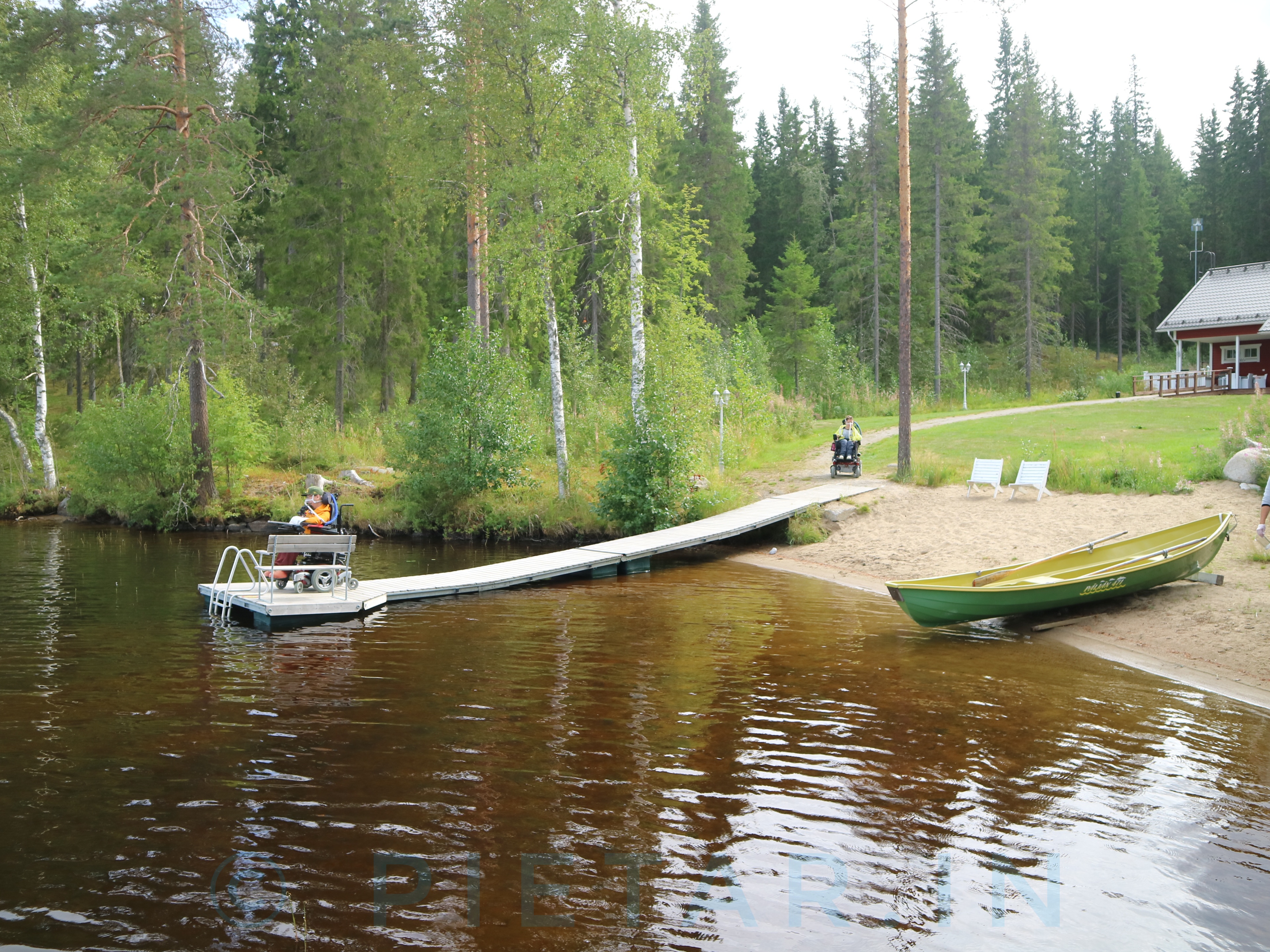 Vieressä sijaitsevan Isojärven maisemat olivat upeita ja se hiljaisuus oli mykistävää. Järvellä oli myös joutsenperhe, joka ui välillä lähellä laituriakin. Jopa laiturille uskalsi mennä sähköpyörätuolilla, joten yritin sieltä kalastaa. Tulos jääköön arvoitukseksi.